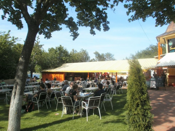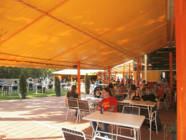 Auch Sonnen-scheue Kunden können die angenehme Atmosphäre im überdachten Bereich genießen!